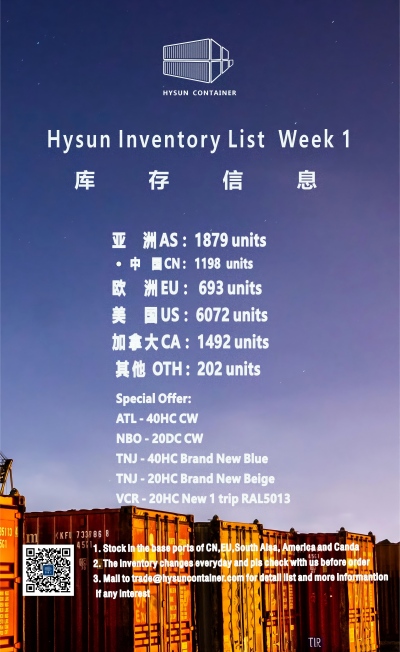 HYSUN has an inventory of CW and new dry containers at major ports in China, as well as in North America, Europe, and South Asia. They are ready to be picked up or rented.