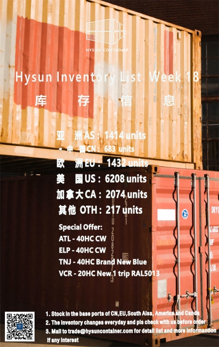 HYSUN has an inventory of CW and new dry containers at major ports in China, as well as in North America, Europe, and South Asia. They are ready to be picked up or rented.
