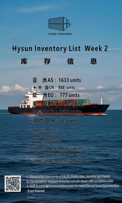 HYSUN has an inventory of CW and new dry containers at major ports in China, as well as in North America, Europe, and South Asia. They are ready to be picked up or rented.
