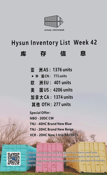 HYSUN has an inventory of CW and new dry containers at major ports in China, as well as in North America, Europe, and South Asia. They are ready to be picked up or rented.